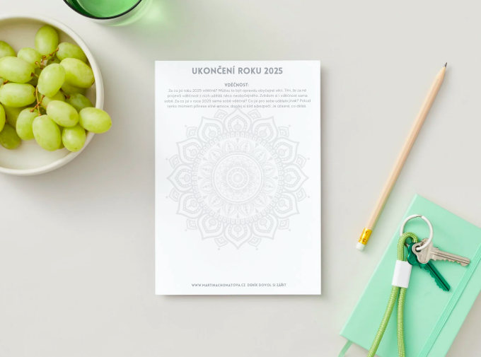 - PDF pracovní listy (9 stran s inspirací, otázkami, podněty), kam si můžeš okamžitě psát zhodnocení a záměr na rok.
